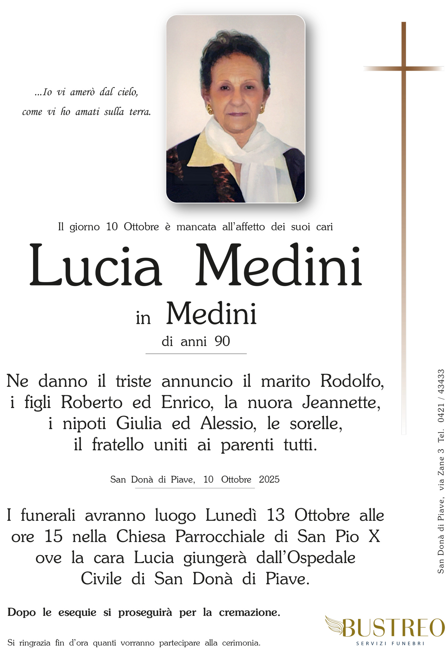 Non piangete la sua assenza, sentitevi vicino e parlategli ancora. Vi amerà dal cielo come vi ha amati sulla terra.